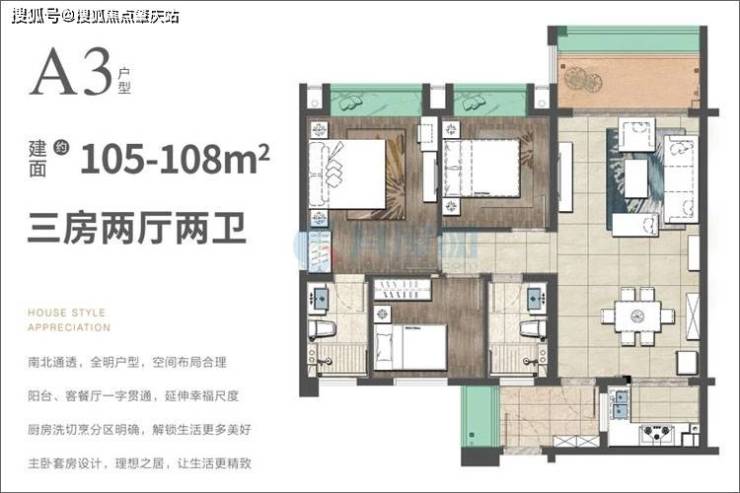 【户型面积】建面为103平米、105平米三房户型
