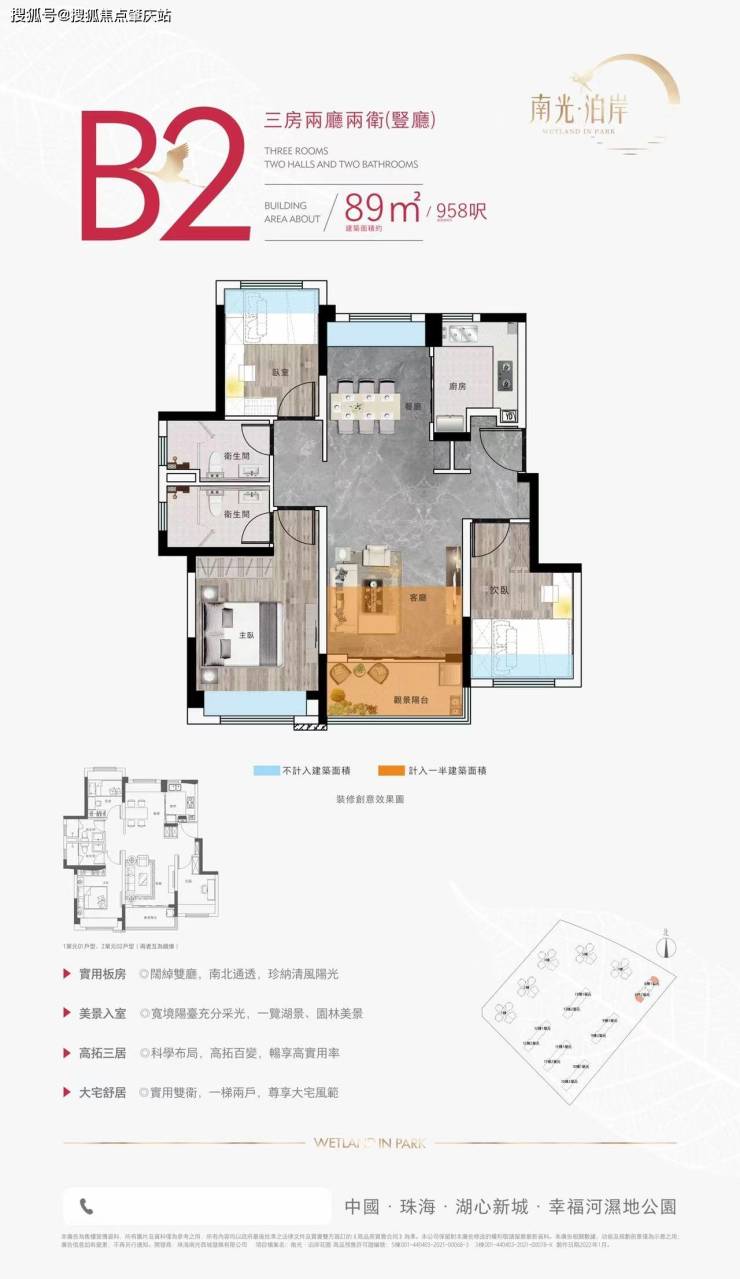 360度全景观南北通透横厅三房独享属于您的那片湿地公园湖景