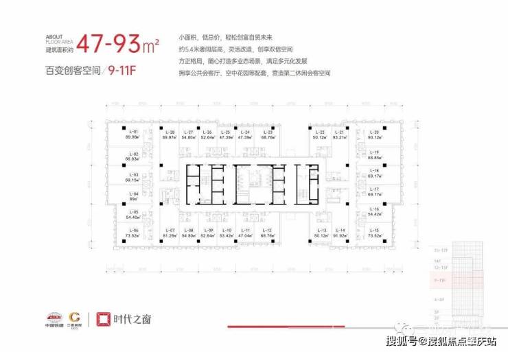 9-11F 建筑面积约47-93㎡百变创客空间