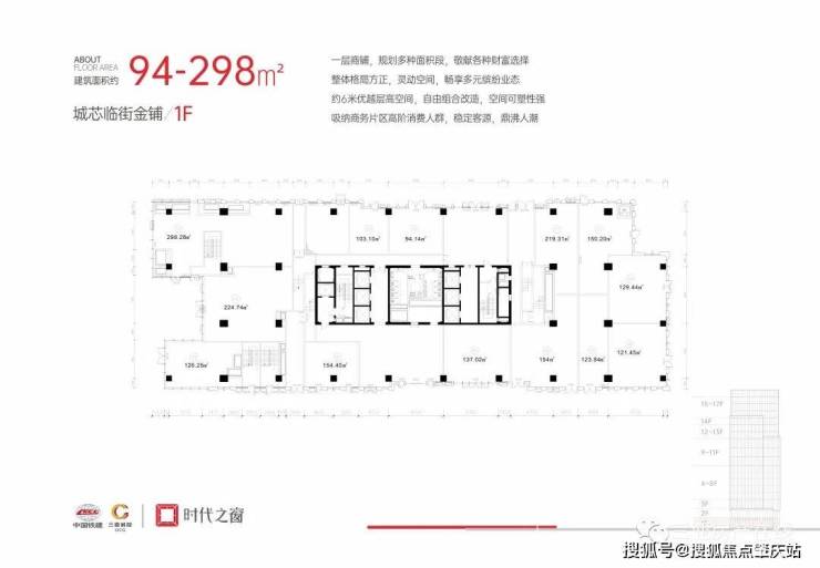 1F 建筑面积约94-298㎡城芯临街金铺