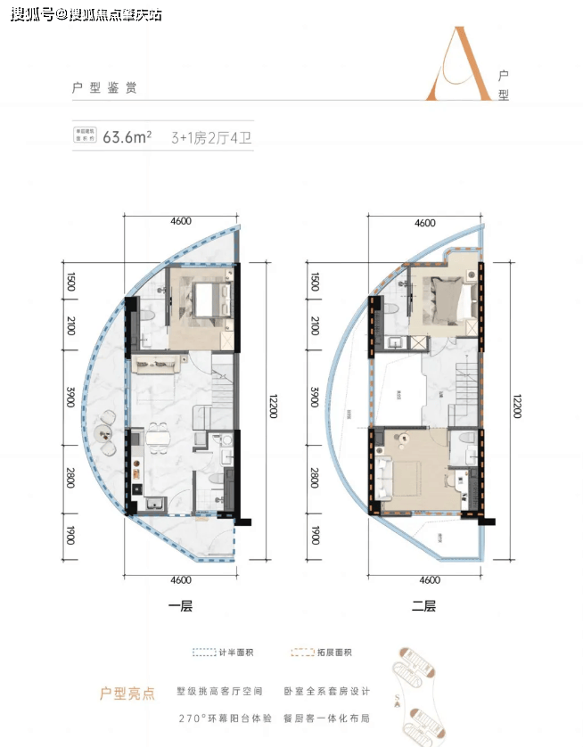 户型:约 42 - 92 平米,涵盖 2 房两厅两卫、3 房两厅两卫等 。在售主力户型及总价为 63㎡三房四卫(240 万 - 20 万 );51 - 57㎡2 + 1 房 2 卫(180 万 - 240 万 );42 - 45㎡2 + 1 房 2 卫(160 万 - 180 万 ),单价 3.5 万买一层送一层 。