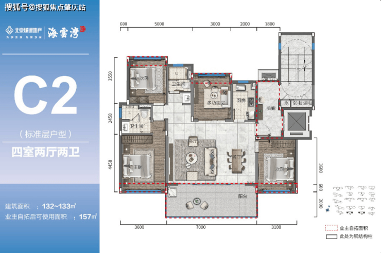 设计亮点:户型设计以大开间横厅为主,如 B1 户型采用一字横厅设计,有 8.1m 阔景阳台,山海大境尽收眼底;C1 户型有 270° 观景望海双阳台,主卧私享 270° 阳光露台;A1 户型横纵通透双厅双阳台,南向三开间采光充足;A2 户型三大开间朝南,6.8 米双联阳台捕捉舒心与惬意;C2 户型四室大宅,南北通透,近 7 米宽境双厅连阔绰阳台开怀揽景。