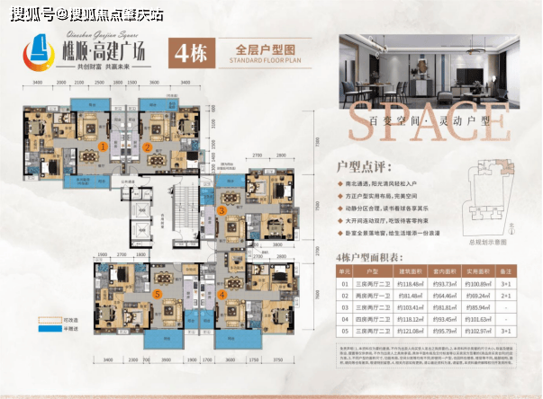 项目现推售的是:1、2栋2梯4户(4个户型:87m两房,121m--142m三房),3、4栋2梯5户(5个户型:81㎡两房,103㎡-121㎡三至四房),30层高。