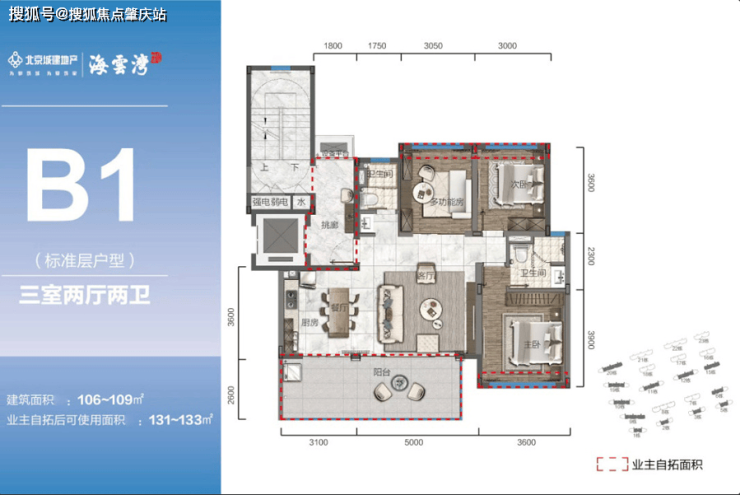 主力户型:有 105-120㎡三房、132㎡四房,包含标准洋房、花园洋房和阁楼洋房等多种类型,满足不同家庭结构的需求。