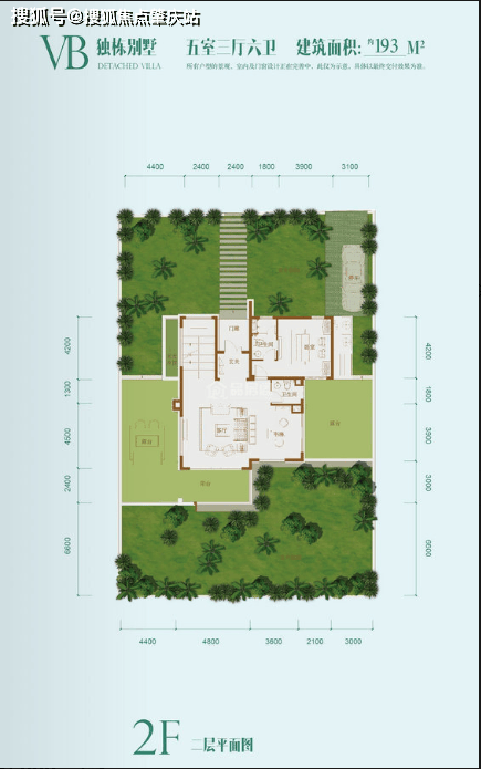 VB 户型:建筑面积 193㎡,五房三厅六卫,房间数量多,可满足大家庭或多客人的居住需求,室外空间大,适合家庭度假、朋友聚会等。
