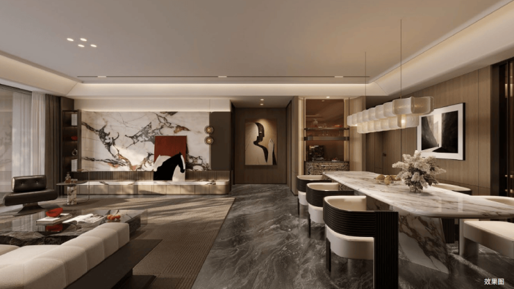 公区以海派为笔触,染现代之气韵,融汇成一方优雅生活的序章