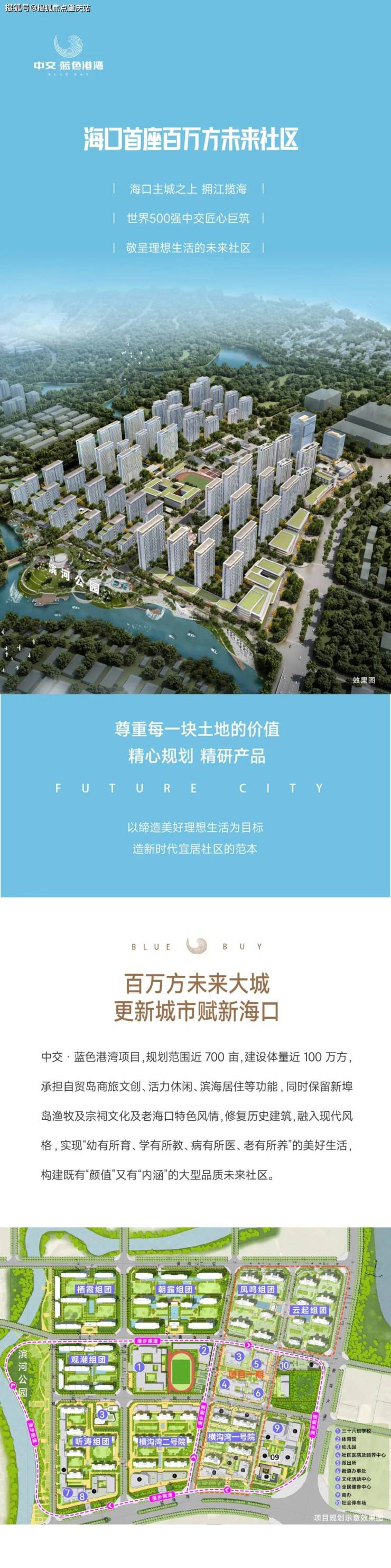在配套方面,中交・蓝色港湾同样表现出色。周边直线 1 公里内分布着 10 个公交站,公共交通网络发达,出行便捷。靠近新埠岛大道,自驾出行也极为方便。直线 3 公里范围内,教育资源丰富,涵盖 55 个幼儿园、12 个小学,如海口寰岛实验小学(第二校区)、海口市第十六小学等,以及 4 个中学,包括海口寰岛中学、海口市第九中学海甸分校等,为孩子提供一站式的优质教育。医疗配套也十分完善,直线 3 公里范围内有 2 个一级及以上医院,其中海口市人民医院海甸总院距离项目仅 2.7 公里,为家人的健康保驾护航。商业配套同样丰富,周边 3 公里范围内有 3 个商场,如星海湾广场等,满足日常购物、休闲娱乐需求。项目自身还规划有数万平米的综合商业体与全业态邻里社区商业,集美食、零售、亲子、影院等多元业态于一体,打造便捷的生活圈。生态环境更是宜人,周边 3 公里范围内有 32 个公园,最近的公园距离仅 541 米,闲暇时光漫步公园,享受自然的宁静与美好。