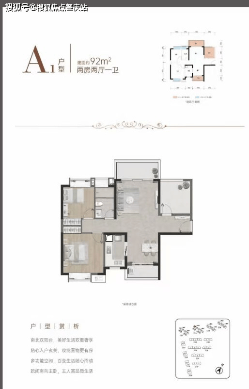 户型方正实用率高,舒居大两房