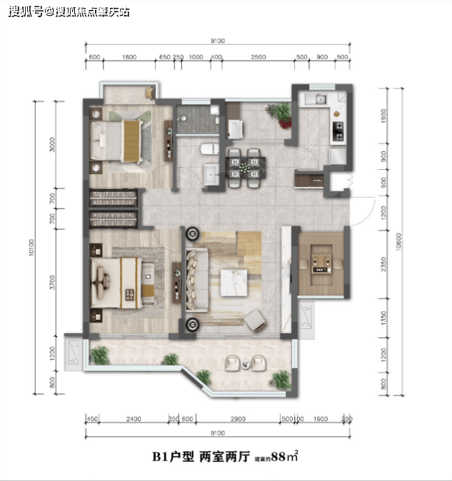 在售户型:洋房88平/两房
