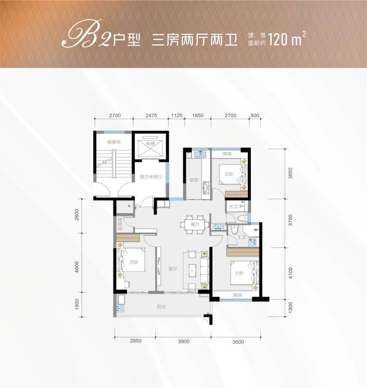 120㎡三室两厅两卫