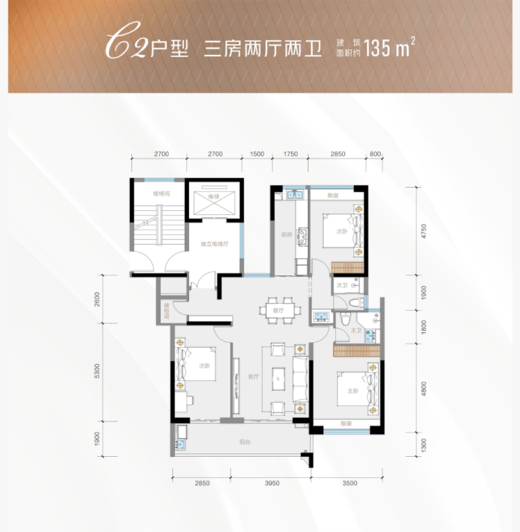 135㎡三室两厅两卫