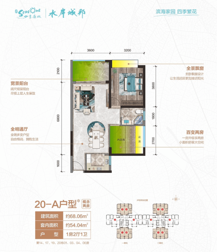 💎 20-A户型:约【68.06㎡】2房2厅1卫