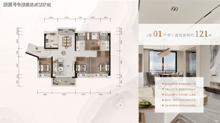 四开间朝南!98%的超高实用率!
