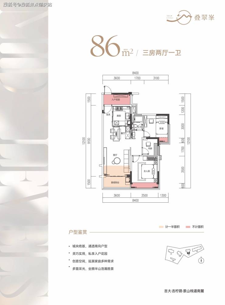 城市中心罕见2.0容积率,纯粹豪宅规划尺度,营造疏阔的建筑空间。叠翠峯南北坐卧,藏风聚气,于半山高度,360°全无遮挡,推窗即远眺城市与山,前后千米无楼间距遮挡,定义半山顶豪物业典范。