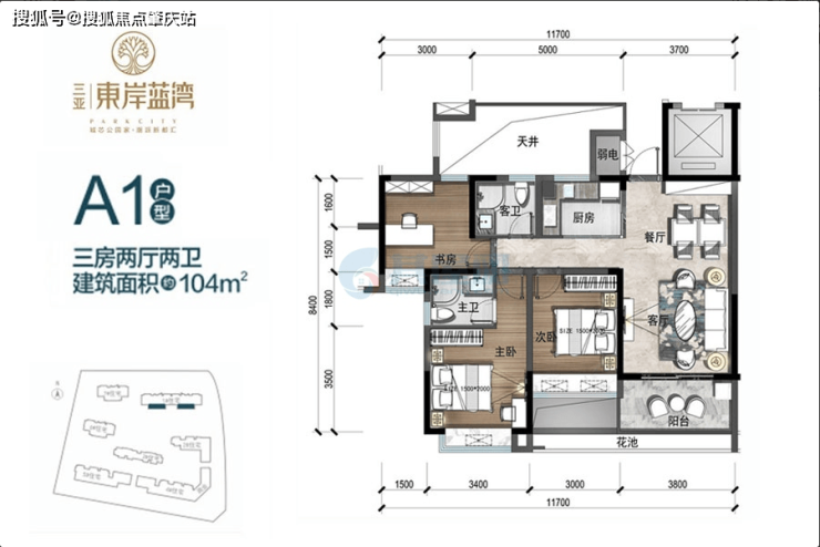 A1户型:102㎡ 精致三房