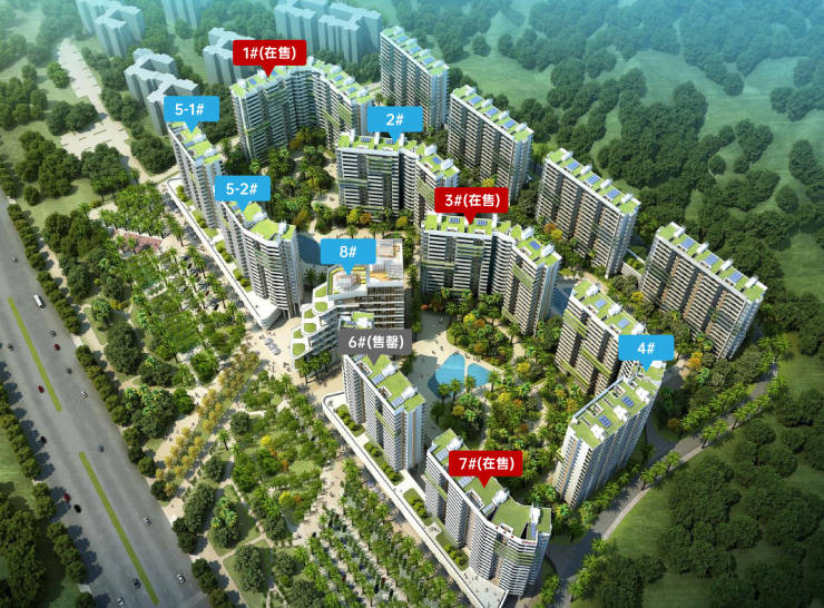 合围式布局:建筑群落以围合式布局铺展,最大化预留中央景观空间,让每一栋建筑都能享有均衡的观景视野