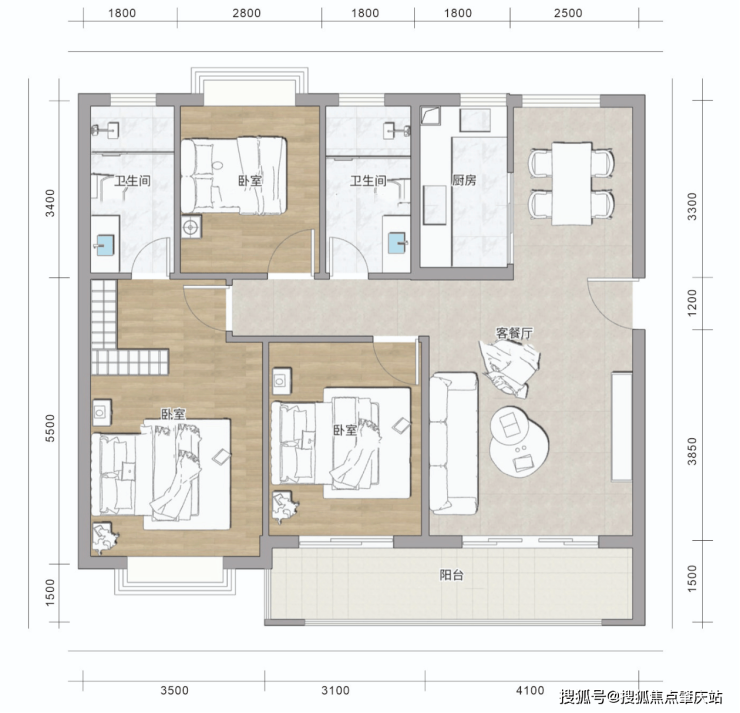◎私密有序:方正全明采光奢阔户型,空间合理分区,互不干扰