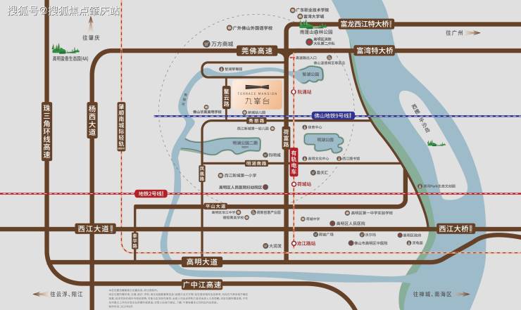 项目距离有轨电车阮涌站仅约200米,约20分钟可链接整个高明新旧城区,仅5站到规划的佛山地铁2号线荷城站,未来,约60分钟可直通广州南站,快速链接湾区城市群,这种优势,才能做到“出则繁华,入则宁静”的动静兼得生活圈,才赋予了高明国资首个大平层豪宅项目“九峯台”。