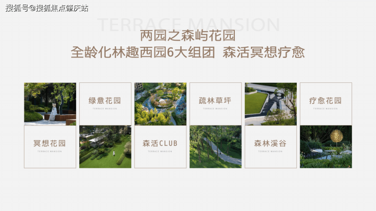 除此之外项目还配备了12个组团冥想花园、绿意花园、疏林草坪、疗愈花园、