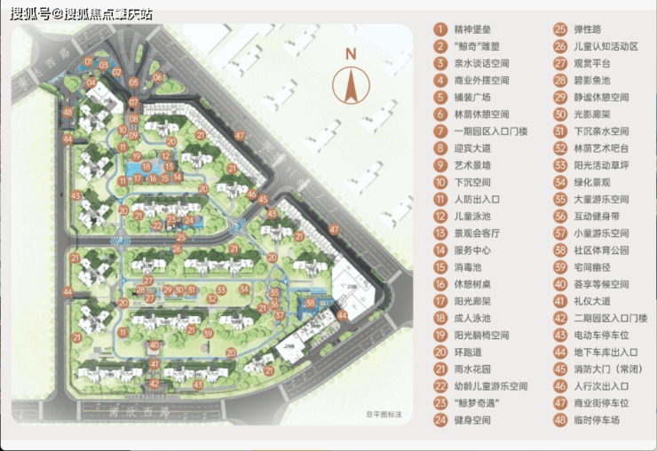 社区以“鲸奇”为设计理念,融入海洋元素与创新场景,布局六重功能主题空间,将特色雕塑、水景植被、功能空间与归家动线串联