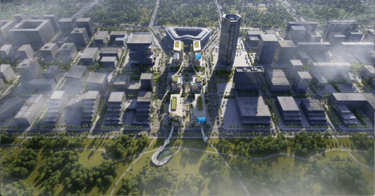 设计亮点:由北京建筑设计研究院邵韦平大师主笔设计,采用 4 栋花园式围合布局,将生态自然引入办公空间,打造沉浸式花园办公,达到中国绿色建筑三星标准,应用光伏发电科技。