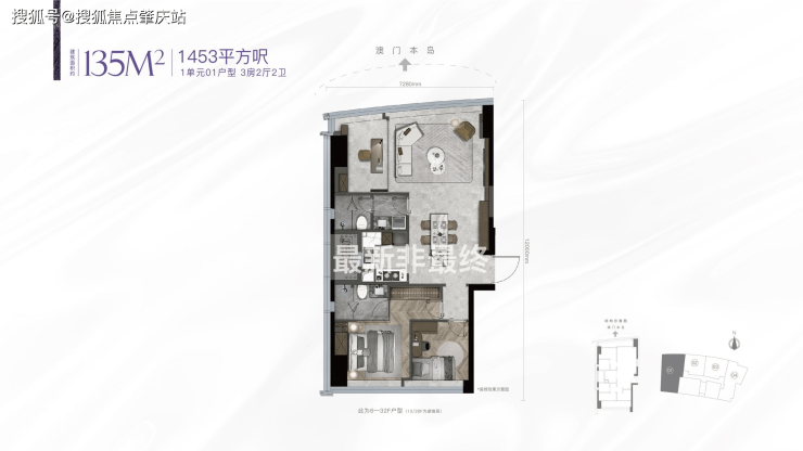 1房2厅1卫,超8米绝版景观面,看一线海景、澳门景,户型方正实用,配有明火厨房