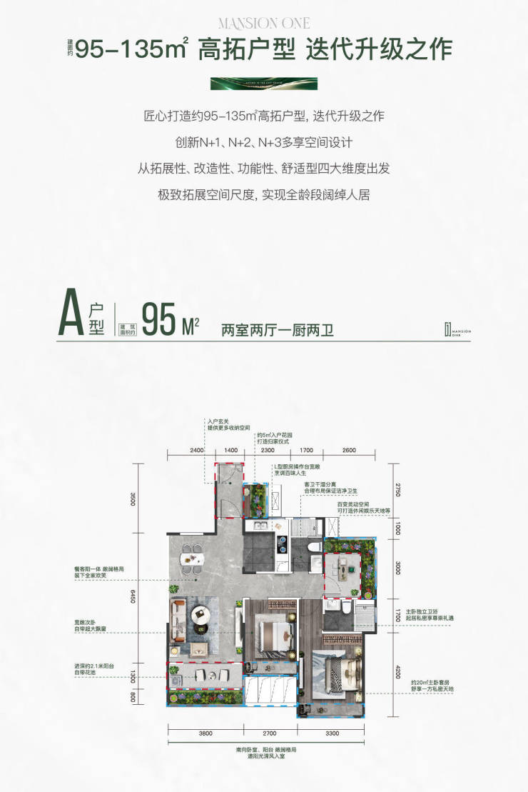 建筑面积约95-135㎡高拓户型 进阶之选