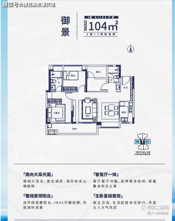 十二、【一字楼布局,构筑健康舒居】 无遮挡一字楼,南北朝向,户户观景。 ——{ 户型鉴赏 }—— 高拓展N+1户型,同样的面积,多一房空间 房型方正,客餐厅合理布局,整屋分而不离 南北通透,全明户型,四时有光,推窗即景 三室朝南,大横厅设计,连接超大景观阳台 私密主卧独立卫浴,设瞰景飘窗,大面宽采光