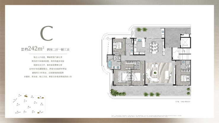 南北通透,超阔南向开间、内外景致无限交融,一切服务于奢适至上,从光影、视野、体感等营造纯粹阔绰的空间格局。