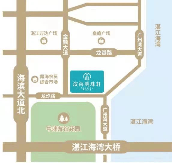 位处开发区核芯地段,西至湛江西站,东往海湾大桥,北往赤坎区、南通霞山区,先天的便利条件带来得天独厚的区位价值优势。