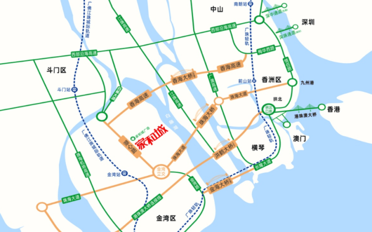 ? 香海大桥、洪鹤大桥、金海大桥、鹤洲新区-高铁枢纽中心站、珠海机场等在侧,无缝衔接湾区生活