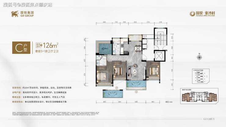 C户型:约126㎡ 奢居3+1房2厅2卫