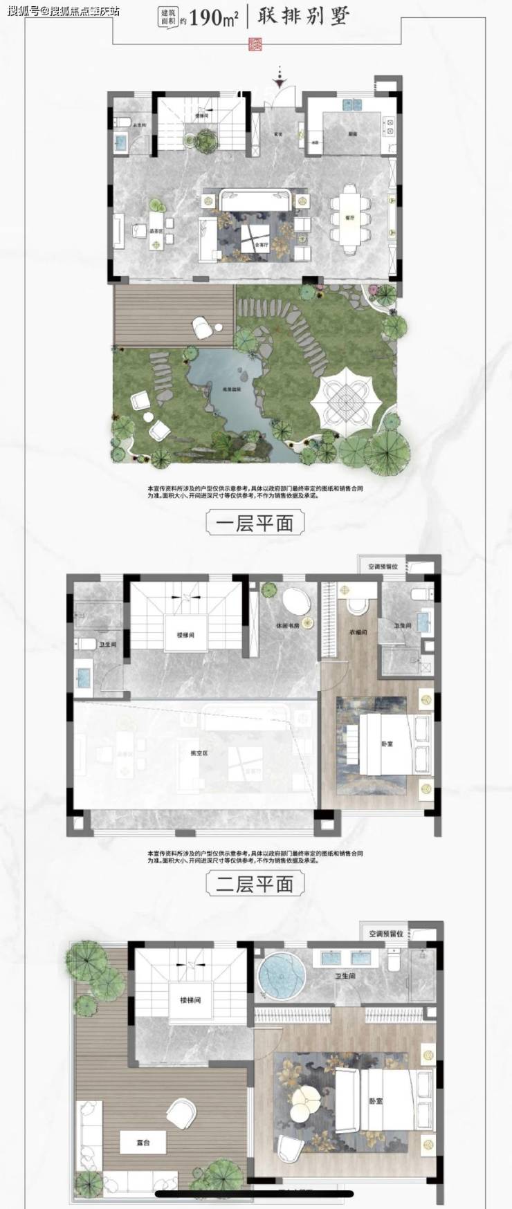 产品信息:全部为建面约190㎡户型,提供两种产品形态——联排别墅与合院别墅,均为毛坯交付,便于业主自主装修设计。