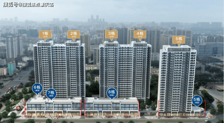 内部配套:小区规划有约 7600㎡综合商街,未来将成为消费、休闲、生活聚集地。其中,7、8 栋为独立式立体商业,多层 / 多套灵活搭配,配备齐全电梯、地上停车位、卫生间等公用配套。5 栋社区主入口旁设有小面积金铺,临近小区主入口,主流动线汇聚消费势能。