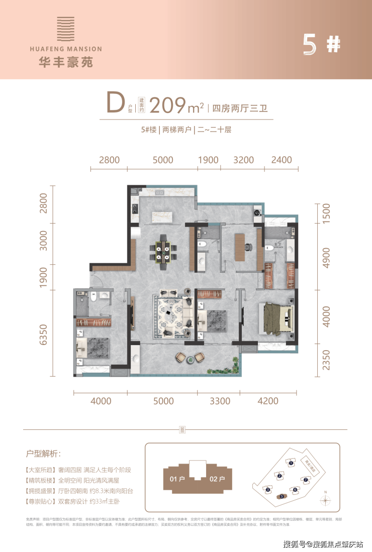 D户型 209㎡ | 四房两厅三卫(楼王)