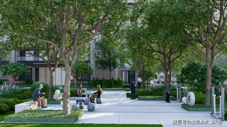 全龄活动区:450米环形跑道、儿童乐园、老年健身区、邻里休闲区