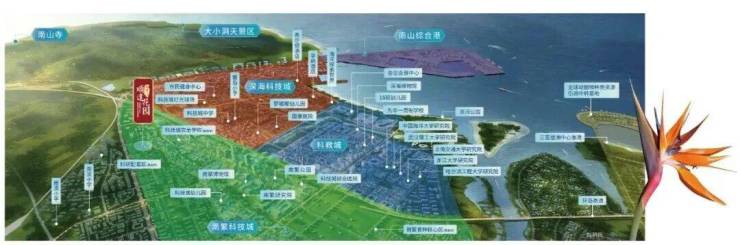 双港包括南山港和中心渔港;双城包括崖州湾科技城重点片区(包括南繁科技城、深海科技与大学城、崖城综合服务区)和崖州古城;五组团包括南山佛教文化圣地组团、梅山山海公园组团、保港科技预留组团,以及梅山、镇海远景发展组团。