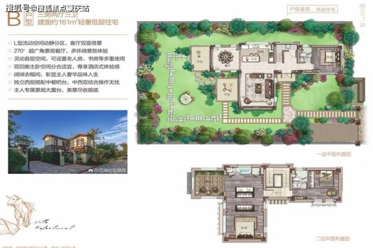 【户型面积】B户型:建面为161平米三房户型,花园面积为286平米