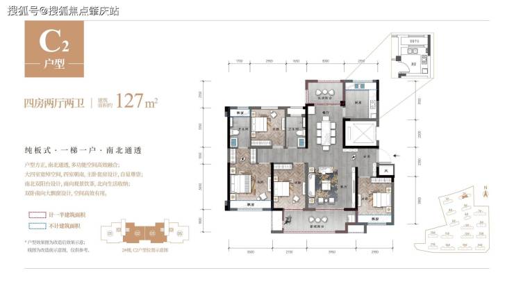 户型规整方正,宽开间短进深,三面或四面朝阳,南向超7米宽境大阳台,高达13.5米户型大面宽;
