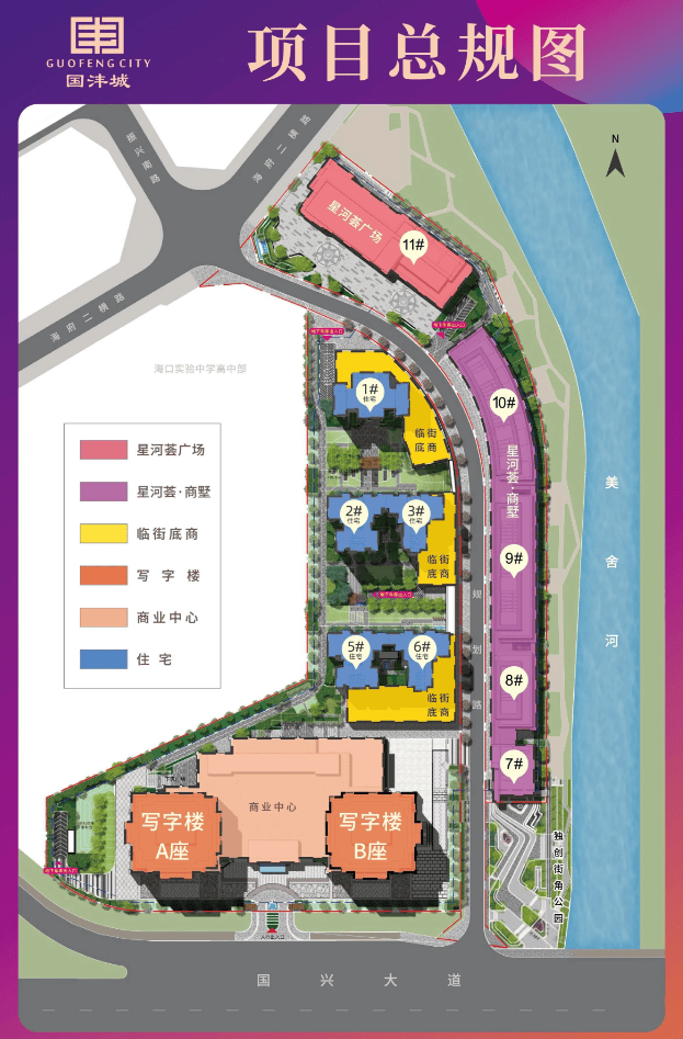 生态中心:优享美舍河带状公园、海南文化体育公园、南渡江公园、美舍河湿地公园、红城湖公园、明昌塔文化公园等。