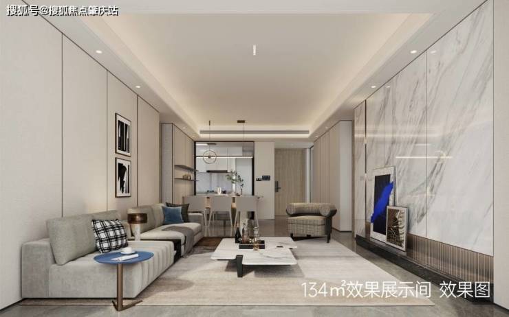 ②打破物理空间界限形成更开阔的整体,玄关、餐客厅、厨房、阳台无视线阻隔,美学与功能融会贯通。③窗外山湖海园风景气韵自然流淌进室内,亲情互动无隔阂,盛载大家庭的欢聚时光。