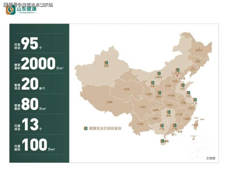 旗下健康实业进驻北京、上海、广东、山东、陕西、江苏、湖南、广西、海南、宁夏、内蒙、新疆等12省市(区),开发项目95个,荣获中国品牌房地产100强、房地产开发一级资质、省属国有企业中最大康养地产开发企业等荣誉资质,旨在打造国家康居示范工程。国匠实力,值得托付。