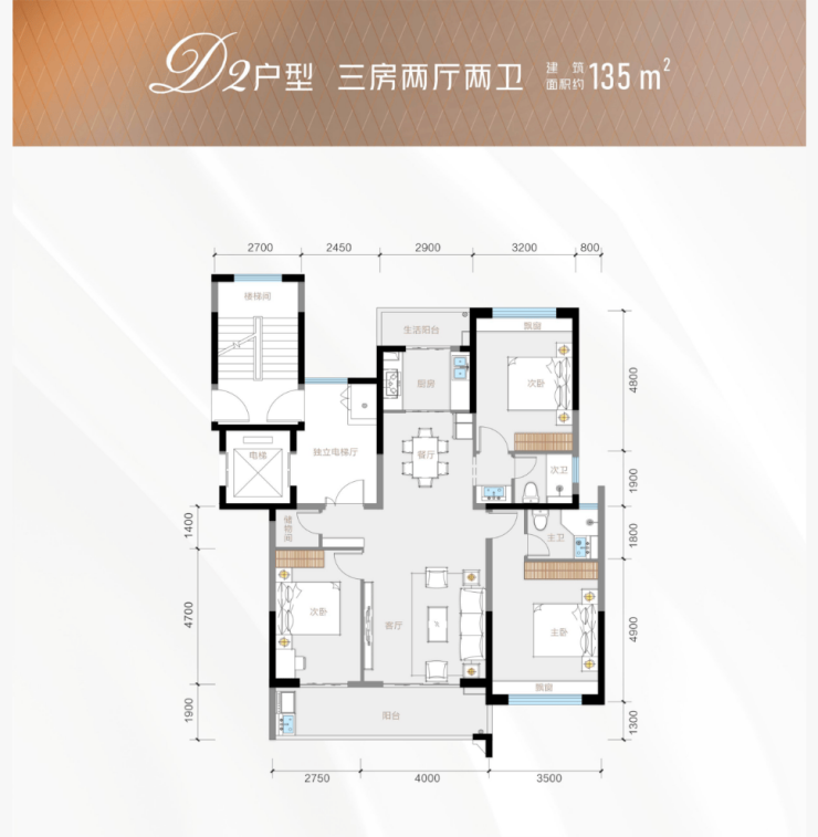 135㎡三室两厅两卫