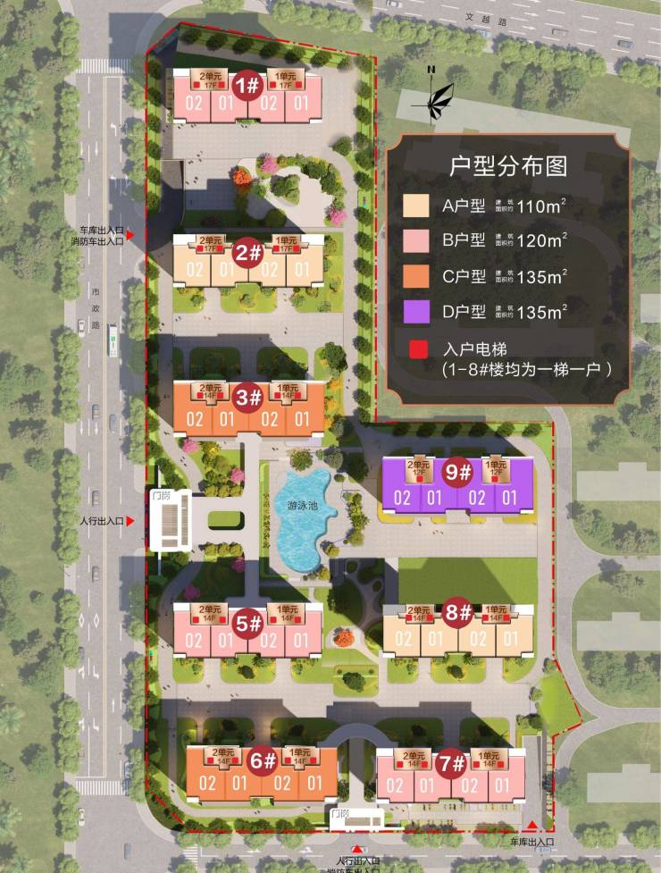 一梯一户(除9#楼)独享入户电梯前厅。
