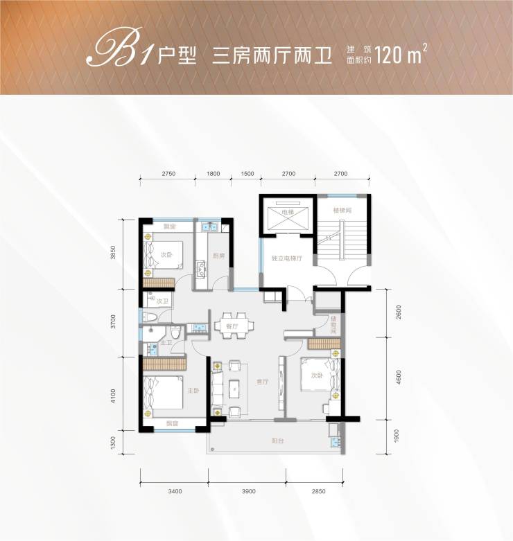 120㎡三室两厅两卫