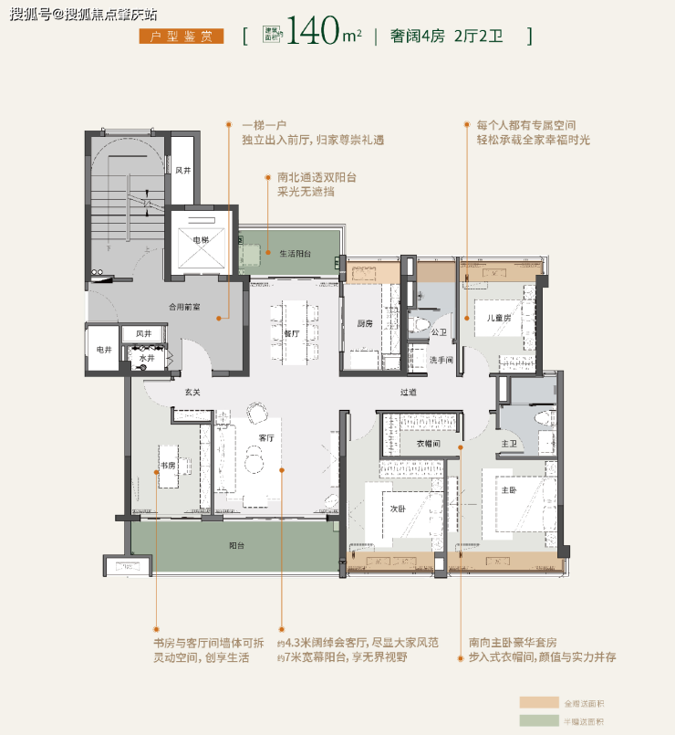 三重递进式全龄段园林——中央会客厅、邻里花园、健身区、阳光草坪、颐养花园,童趣乐园,游泳池。全季、全时、全龄、全景的阳光园林。