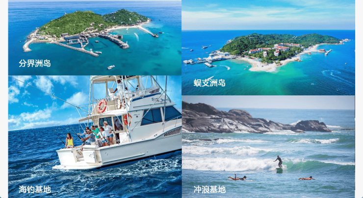 四大海岛:分界洲岛、双帆石岛、蜈支洲岛、南湾猴岛(距离项目约15km)