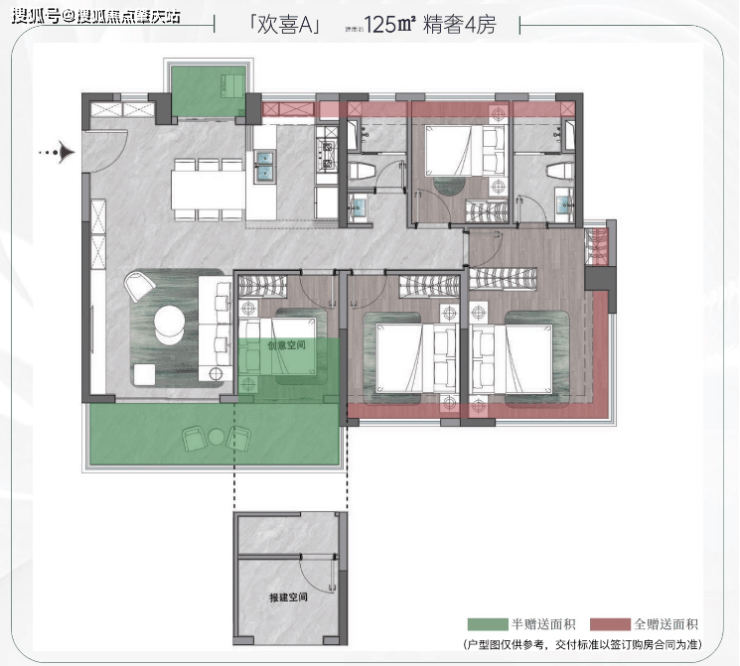 2.【同等面积至高得房率,125方比肩160方】