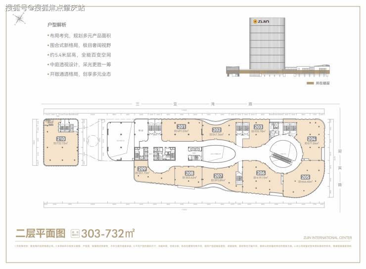 凤凰海岸单元——三亚中央商务区核芯片区,定位为旅游港自贸服务与邮轮、游艇、文化艺术综合消费区。紫金国际中心落位于此,匠造建面约6万方三亚湾芯·滨海都会综合体,实现区域城市服务、旅游文化、总部经济等产业资源全覆盖。