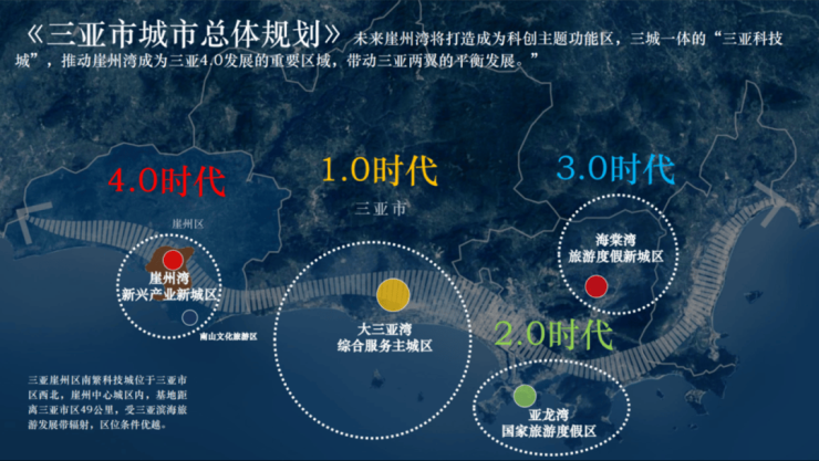 将是三亚发展的4.0时代,下一个价值高地。是海南自贸区建设先行引领区!规划面积69平方公里,规划人口25万人,相当于三亚目前三分之一的人口。重点建设南繁科技城、深海科技城、大学城。